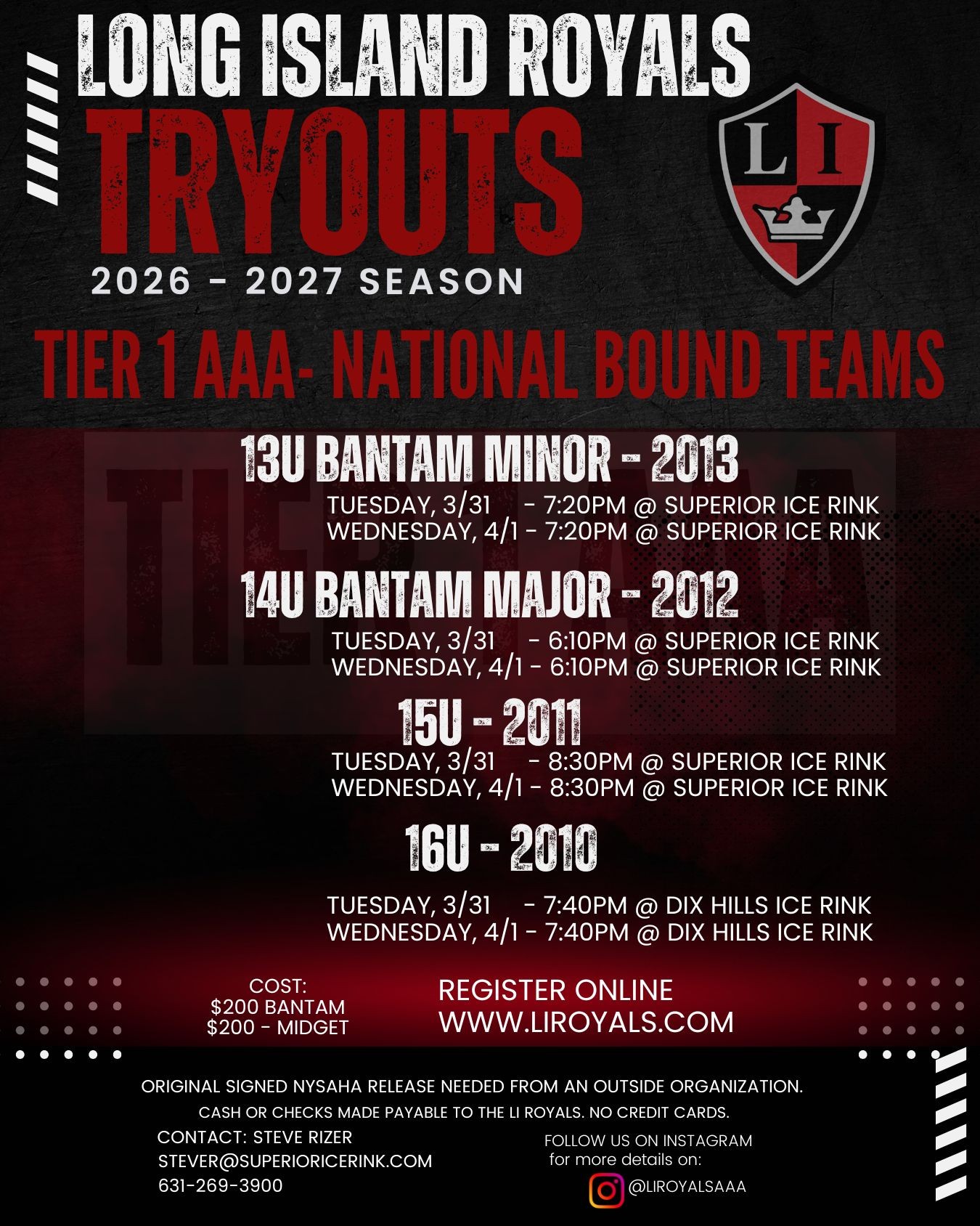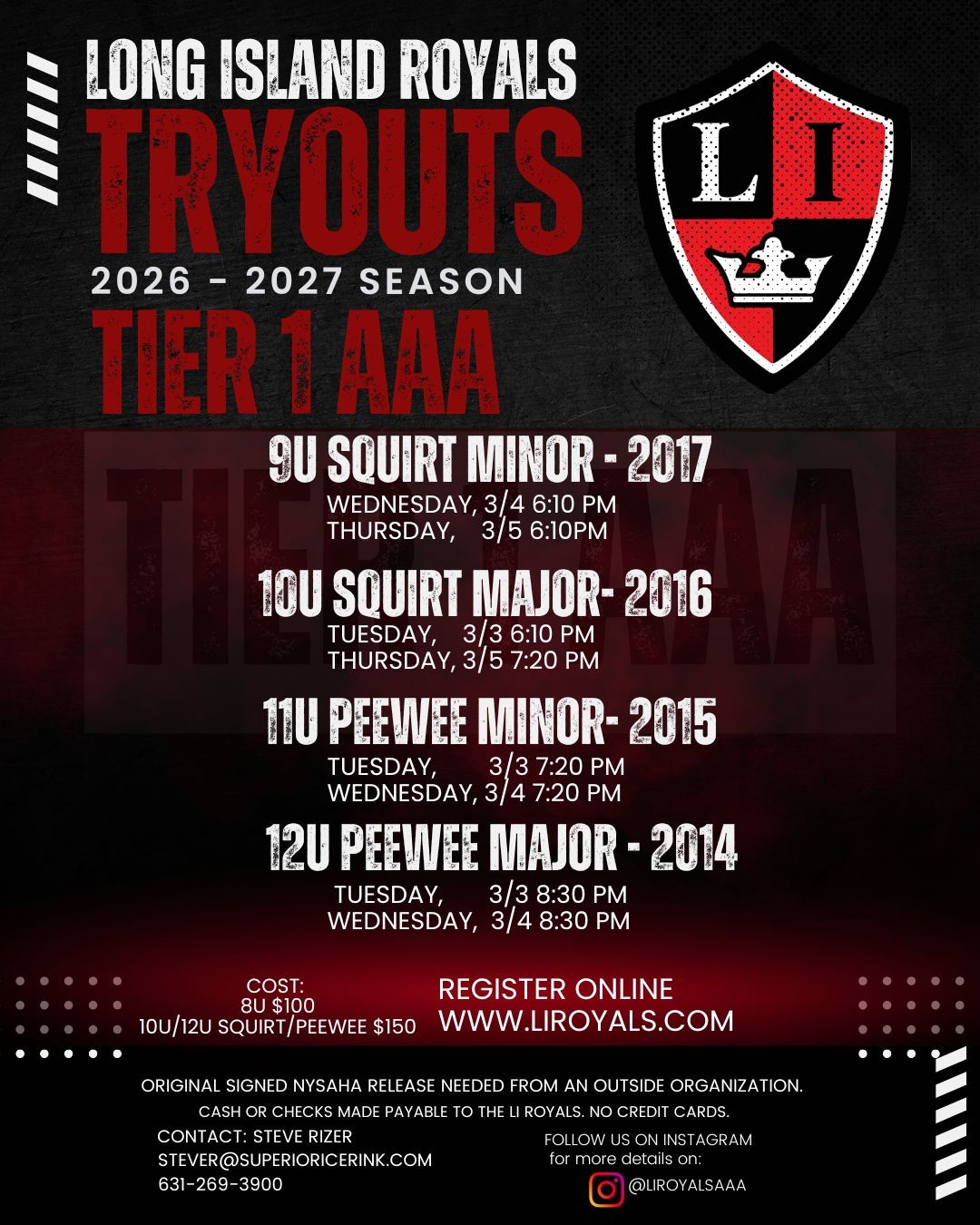 Register here for LI Royals 2026-2027 Tryouts.
